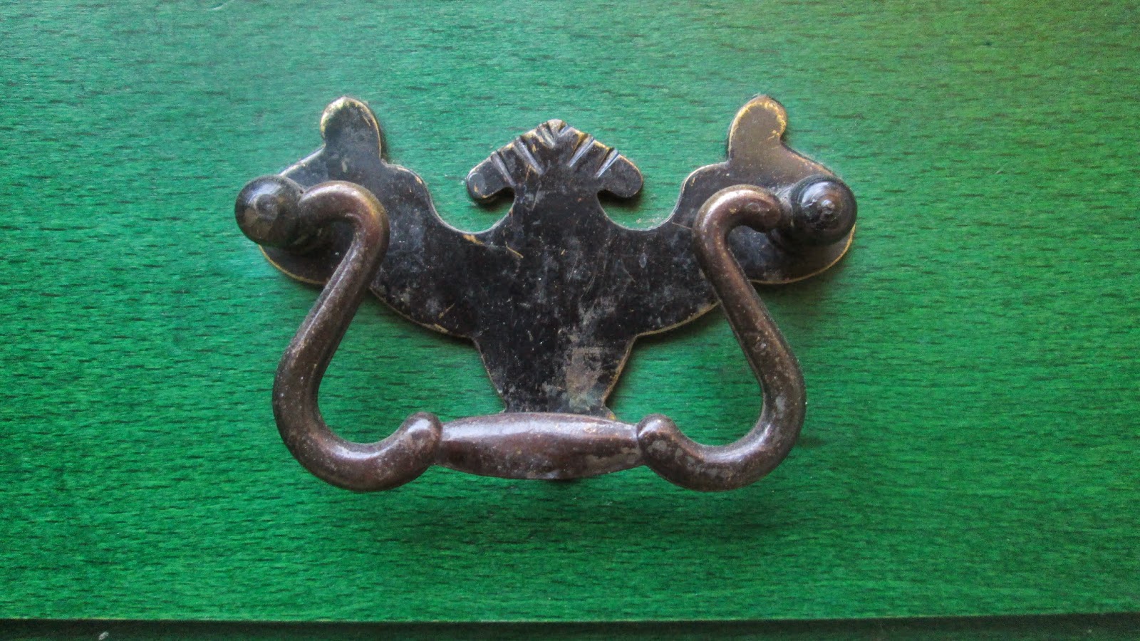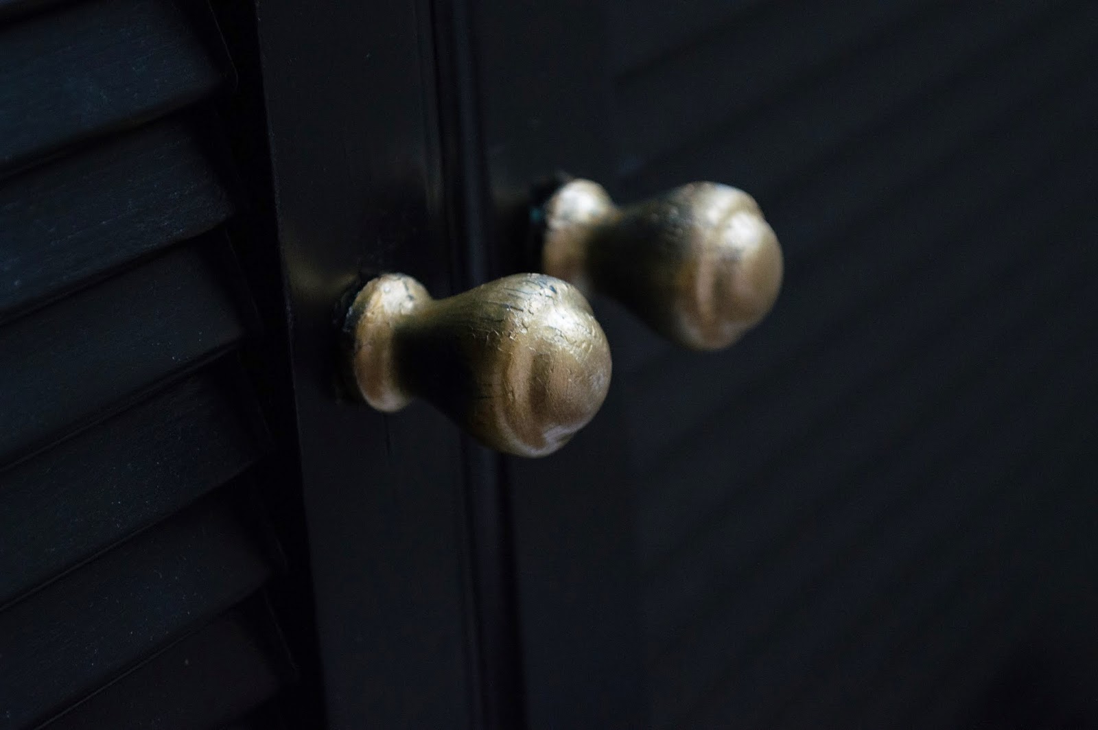 Tudtam, hogy feketére akarom pácolni, csakúgy, mint a tükör keretét, az ebédlőszékeket, és az ebédlőasztalt (amit most nyáron fogok elkészíteni előreláthatólag), ebből következően pedig le kell szednem a régi lakkot, hogy a pác megfogja a fát. Ettől a gondolattól pedig már előre borsódzott a hátam. Így hát első lépésként inkább a kis sárgaréz fogantyúkat vettem kezelésbe, és eltávolításuk után nagyon finom csiszolópapírral lecsiszolgattam róluk a feketeséget.