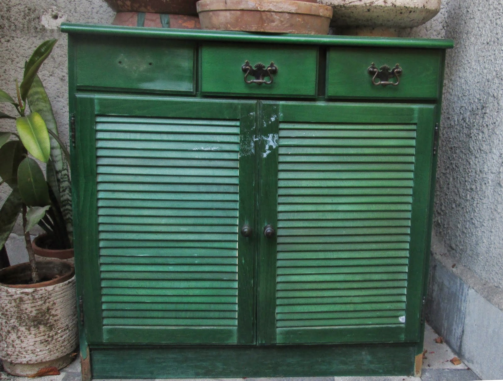 | Ilyen volt, mikor megtaláltuk, aztán a teraszon telelt a szekrényke |