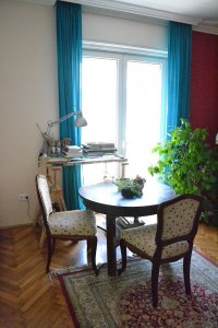 Számomra hangulata van. Gondolkodtam kik lakhatnak benne, a szöveget később olvastam el. A bútorok régiek, de a színhasználat pl. háló, s egy-két dolog fiatalokra engedett következtetni. Szeretem, ha egy otthonnak egyénisége van, s nem a divattrendeket követi.