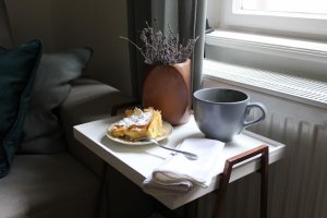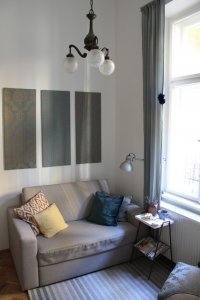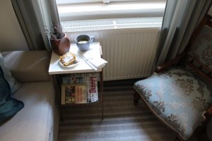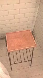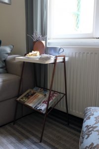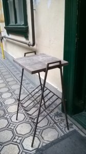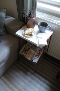 A nappaliban nincs hely igazi dohányzóasztalra, így egy kisasztalt használok arra, hogy mégis le lehessen tenni valahová dolgokat, ha elnyúlok a kanapén. A méret nagyon meg van szabva, ezért eléggé örültem, mikor találtam egy megfelelőt az ecseri piacon. Ahogy viszont telt az idő, rájöttem, hogy nem igazán tetszik a forma, kicsit bumfordi, vastagok a lábai. De nem kezdtem keresgélni, mert ennél sürgetőbb dolgaim is voltak. Viszont a sors gondoskodott helyettem is a helyettesítésről. Találtam ezt a kis retró asztalkát, aminek azonnal beleszerettem a formájába. A fa viszont kopott és elszíneződött, a fém pedig rozsdás volt, így festésre került sor.