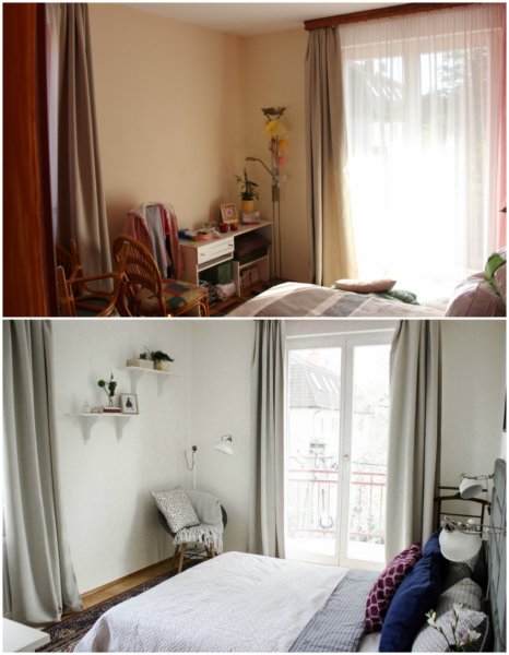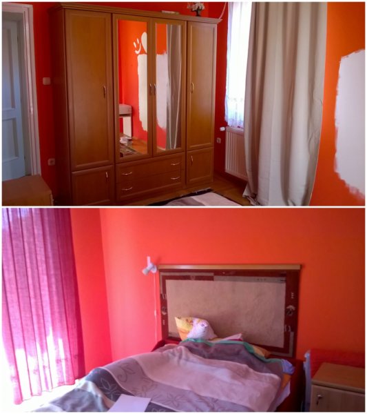 Már feltűnnek az előtte-képeken is a festékminták, és az új függöny is, de azért látszik, honnan indultunk: