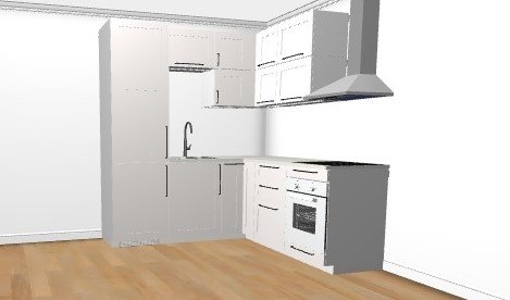 Nagyon csúf laminált bútorlapos konyha, márványmintás csempék mindenütt, szomorú alakú bútorok, fájdalmasan rövid és sötét függönyök, furcsa falbeugrások furcsa szekrényekkel.
