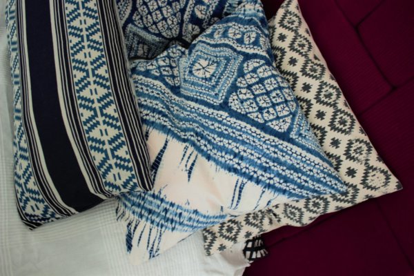 Aztán lomiztam egy shibori terítőt, amiből varrtam csodaszép párnákat, ezek a legutóbbi változtatások után az öcsém szobájába kerültek: