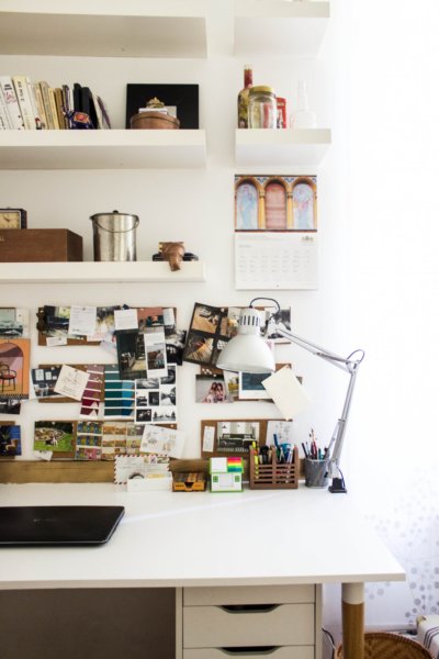 Az íróasztal pedig… A régi ikeás asztalom lett anno áthozva. Egy ponton meguntam a kopott tetejét nézni, és átfóliáztam egy fehér öntapadós fóliával, illetve egy ponton új lábakat is kapott. aztán a teteje átkerült egy másik lakásba, itt pedig egy leselejtezett aztal lett újrafestve és felhasználva 😀