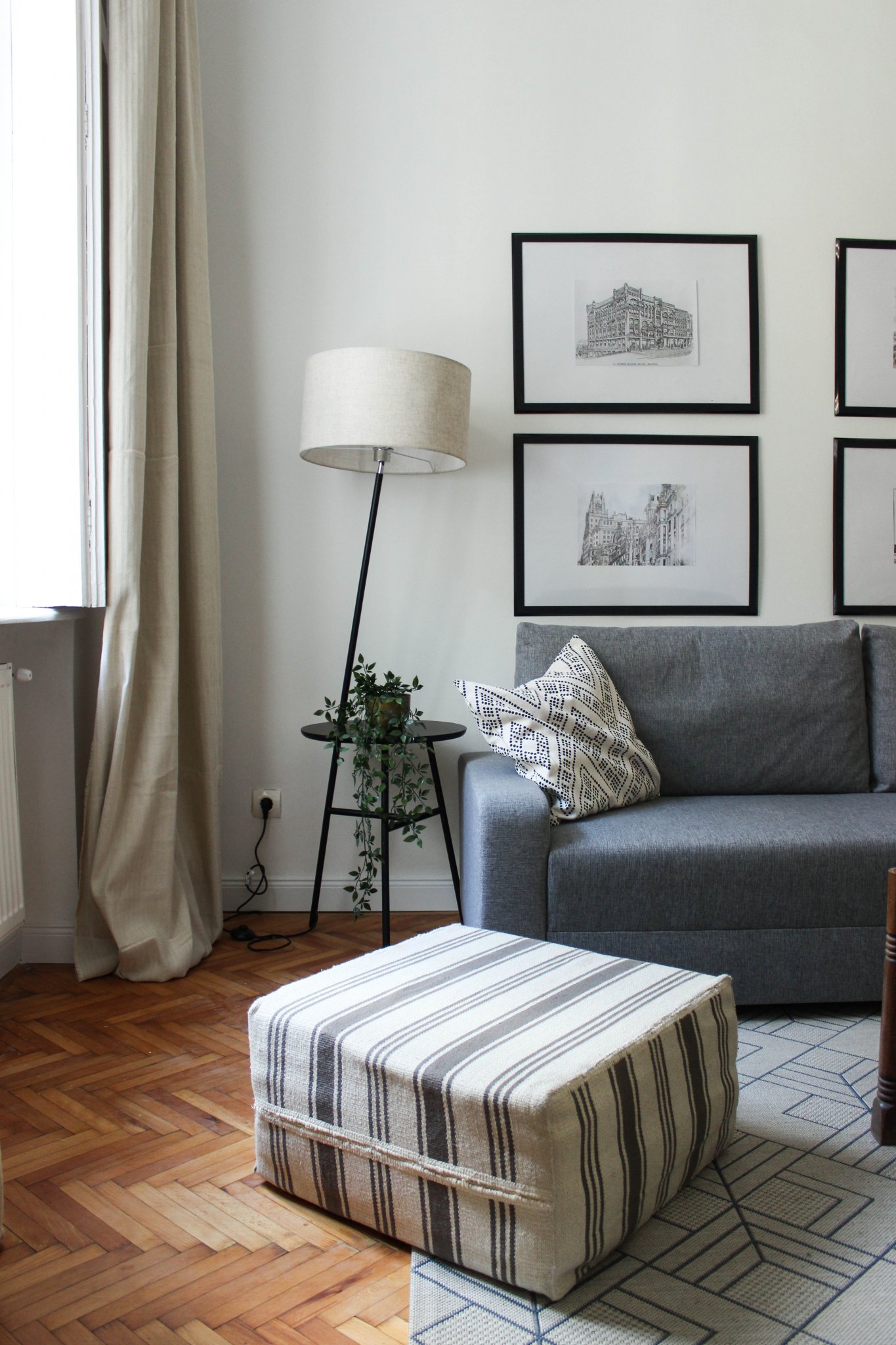 Függönynek egy len leverék anyagot használtam, ami természetes színével és anyagával jól passzol a szoba többi részéhez.